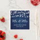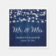 Estes guardanapos de papel de casamento com madeira de celeiro e luzes de cordas são ideais para uma festa de casamento azul-marinho. Personalize facilmente com seus detalhes de casamento.