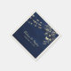 Núcleos de núpcias azuis de marinho elegantes com textura rústica de madeira, delicado esboço floral de ouro e luzes brilhantes de cordas. Personalizados com os nomes e a data do casal, estes guardanapos suaves acrescentam encanto a qualquer comemoração do inverno ou da noite. Um belo toque final para sua recepção de casamento, hora do coquetel ou configuração de janto.