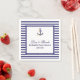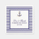 Personalize este elegante design de Marinho de de Casamento Náutico Stripes Napkin. design de padrão striped marinho azul e branco com uma âncora da nave do marinho na parte superior e uma borda de corda azul e branca.O padrão striped azul e branco do marinho também é colocado na parte traseira. Um modelo para uma fácil personalização dos detalhes do seu casamento, como nomes de noiva e noiva, assim como a data do casamento.O mesmo design está disponível em outros suprimentos de papel de carta de casamento correspondentes para carregar o tema do casamento náutico em estilo.