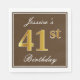 Este simples e elegante design de guardanapo de papel apresenta uma mensagem como "Aniversário de 41ruas de Jessica" (com as "41ruas" a apresentarem uma falsa coloração em forma de ouro) numa área quadrada de cor castanha com um contorno de fronteira simples. O nome está em um texto semelhante a script de cor branca e pode ser personalizado. Napkins como estes poderia talvez ser usado numa festa de aniversário para alguém que comemora seus quarenta anos de primeiro ano. [~Z0000139]