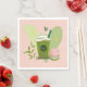 Design verde e rosa de xícaras bonitinhas de chá e macarões.