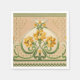 Decorações de Casamento Românticas Presentes Feriado Natal. Estilo Art Nouveau. Medalhões alternados grandes e pequenos em rolos verdes estilizados. Dentro dos medalhões grandes estão grandes buquês de flores amarelas. Há uma flor singular em cada medalhão pequeno.