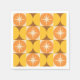 Este é um padrão elegante de estímulos atômicos de meio século em círculos laranja e semicírculos amarelos em quadrados. É um guardanapo excelente para qualquer um que ame designs do médio geométrico