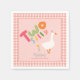 Este design de segundo aniversário de guardanapo de de meninas bonitinhas e caprichosas apresenta um ganso de bobo com um chapéu cor-de-rosa, com uma fronteira de gingham, e pode ser personalizado com o nome de suas meninas. A fazenda perfeita para o seu segundo aniversário!