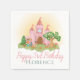 Este design de guardanapo de aniversário de criança de conto de fadas, bonito e caprichoso, apresenta um príncipe e princesa modernos, com um castelo rosa encantado, flores, lebres, cervo mágico e cogumelos brancos. Este design de "uma vez por vez" pode ser facilmente personalizado com o nome e a idade das suas raparigas. A perfeita adição encantada à festa de aniversário do seu filho.