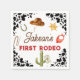 Encoste-se! Prontos para uma festa de aniversário de rodeio? Esse design apresenta itens temáticos de cowboy como chapéu de cowboy, ferradura, cactos, crânio e padrão de impressão de cochicho ou vaca. Todo o texto é editável neste convite de aniversário com formato neutro para cowboy! A design é neutra em termos de gênero, adequada para rapazes ou raparigas e totalmente personalizável para uma rua ou segundo aniversário. Localizar itens correspondentes no meu compro.