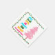 Cute and cheerful holiday party paper napkins featuring a colorful strand of Christmas lights wrapped around your vibrant script. May Your Days Be Merry and Bright written in bold letters from light blue to your family name in hot pink. A rainbow of colors on cute decor for the holidays with a pretty pink tree.