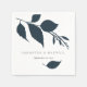 Este modelo de guardanapo de coquetel faz parte da coleção de luxo de Do Tell A Belle. A design apresenta folhas botânicas com uma folha azul solteiro. Personalize-os com seus nomes e data do evento...até personalize as cores das folhas para dar uma olhada no tema do casamento. Basta clicar no botão "Editar usando ferramentas de design" no menu suspenso Personalização e escolher a cor que quiser. Perfeito para as paletas de cor do casamento. Uma escolha simples para casamentos azuis e botânicos marinhos. Para ver mais cores de casamento como esta, visite www.zazzle.com/dotellabelle