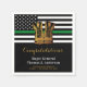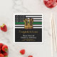 Thin Green Line Military Retirement Party Napkins. Celebrate years of dedicated service, your military retirement and host friends and family to your military party with this modern Thin Green Line Flag with Gold Army Boots Military Retirement Napkins. USA American flag design in Police Flag colors, modern black green white and gold design. This military retirement party napkins is also perfect for military graduation, soldier going away part, deployments and homecoming, change venue in personalization. See our collection for matching military retirement invitations, gifts, military retirement party favors, and supplies. COPYRIGHT © 2021 Judy Burrows, Black Dog Art - All Rights Reserved. Military Retirement Thin Green Line Boots Party Napkins