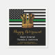 Thin Green Line Military Retirement Party Napkins. Celebrate years of dedicated service, your military retirement and host friends and family to your military party with this modern Thin Green Line Flag with Gold Army Boots Military Retirement Napkins. USA American flag design in Police Flag colors, modern black green white and gold design. This military retirement party napkins is also perfect for military graduation, soldier going away part, deployments and homecoming, change venue in personalization. See our collection for matching military retirement invitations, gifts, military retirement party favors, and supplies. COPYRIGHT © 2021 Judy Burrows, Black Dog Art - All Rights Reserved. Military Thin Green Line Boots Retirement Party Napkins
