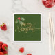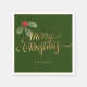 Mínimo design de fraternidade de Natal Merry Holly apresenta um simples ramo de Natal Holly com um falso roteiro de tipografia de folha de ouro "Feliz Natal" concluído com seu nome de família personalizado em um fundo verde festivo. Estes guardanapos de Natal são a adição perfeita à decoração da mesa de Natal.