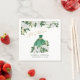 Emerald Green Quinceanera guardanapos com vestido de princesa verde e dourada e arranjos florais de flores brancas de pedônia e verde. Mis Quince está escrito em caligrafia suave e sua redação personalizada em tipografia elegante da serifania. Por favor, veja a minha coleção de Emerald Greenery & White Peony para ver os itens correspondentes ou, envie-me uma mensagem para criar os modelos de que necessita.