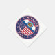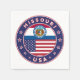 Crachá do Missouri com pavilhão do Missouri e bandeira dos EUA cores, forma arredondada. Emblema do Missouri. Selo do Missouri. Coleção dos Estados Unidos.