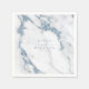 Um fundo de abstrato que lembra o mármore brilhante em tons de azul empoeirado através do azul e do branco de aço é o pano de fundo para textos elegantes e layouts modernos de design nos pedaços desta bela suíte de casamento. O guardanapo de papel de casamento mostrado aqui mostra texto centrado bordado por mármore elegante. Adicione facilmente seus próprios nomes e data de casamento usando a modelo fornecida. Procure ID816 para ver outras peças e opções de cores para este conjunto.
