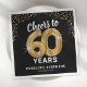 Elegante 60 guardanapos de festa de aniversário com fundo preto na moda que pode ser mudado para qualquer cor, brilho brilhante dourado, o ditado "torce para 60 anos" usando sessenta balões de hélio dourado, seu nome e a data da celebração.