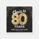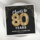 Oitenta guardanapos de festa de aniversário elegantes, com um fundo na moda preto que pode ser mudado para qualquer cor, brilho brilhante dourado, o ditado "cai para 80 anos" usando oitenta balões de hélio dourado, o seu nome e a data da celebração.