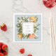 Moldura rústica de citrus botânico do pomar de laranja em aquarela, guardanapos de papel personalizados. O modelo fornece dois espaços para nomes e data do evento. A cor do fundo, mostrada em azul claro, pode ser personalizada.