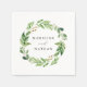 Nossos elegantes guardanapos de papel personalizados apresentam uma coroa de folhagem aquosa em tons vibrantes de primavera e musgo verde ao redor de seus nomes. Projetado para coordenar com a nossa coleção de casamento Watercolor Greenery.
