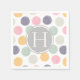 guardanapo com padrão de bolinhas traço de pincel artístico em tons pastéis coloridos com monograma em fonte serifada