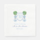 Este clássico design de guardanapo apresenta uma simples crista monográfica com letra de solteiro flanqueada em ambos os lados por uma bola topiária pintada à mão num plantador de "felicidade dupla" azul e branco adornado com arco de disquete azul. Elementos aquosos foram pintados por mim em papel de algodão a 100% e digitalizados em forma digital. A forma da crista é de outro artista. Esta design funcionaria igualmente bem para um chá de fraldas (onde o nome do bebê foi anunciado) ou para um chá de casamento/casais.