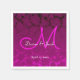 Decoração de recepção de casamento. Os guardanapos de papel personalizados do monograma floral branco cor-de-rosa quente da Fuchsia. Chic, elegante, moderno, moderno, clássico, na moda, lindo padrão metálico suculento. Para alterar a tipografia, clique em editar design. Imagem copyright Marg Seregelyi Fotografia.