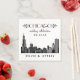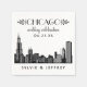 O design de recepção personalizada do estilo Vintage apresenta uma imagem do horizonte da cidade de Chicago, texto personalizado incluindo um monograma em tipos elegantes e glamourosos de decoração de arte, e esquema clássico de preto e branco.