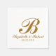 Guardanapos personalizados de papel monograma para casamentos e eventos relacionados. Personalize este elegante acessório de casamento com a noiva e os nomes do noivo, data de casamento, inicial ou qualquer coisa que você quiser. Texto simples e elegante de script em ouro sobre fundo branco.