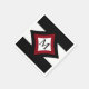 Esta design moderna e moderna consiste num monograma personalizável, preto, vermelho e branco, simples e clássico, em forma de diamante, situado numa linha branca espessa, arrojada e branca sobre um fundo preto.