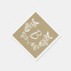 Guardanapos de papel russo com coroa floral branca e monograma personalizado em fundo bege angustiado.