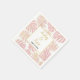 Guardanapo de papel para casamento com folhas tropicais rosa e dourado. Este design excepcional exibe folhas de Filodendro Folha Rasa (Monstera deliciosa) ou Planta Queijo Suíço e folhas de palmeira em rosa desbotado com contorno dourado. Uma moldura branca com contorno dourado segura seu texto. Escolha-o para o seu casamento tropical de praia costeira ou destino de casamento.