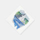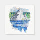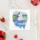 Representando uma paisagem serena, a montanha sobe majesticamente com seu reflexo espelhado no lago tranquilo embaixo. Cercado por arvores verdes e um céu pálido com uma nuvem que passa, a cena evoca um senso de paz e beleza natural. O uso de contornos ousados dá à imagem uma sensação cômica, quase cartunista.