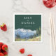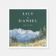 Estas elegantes guardanapos de papel para casamento com montanha em aquarela verde esmeralda e flor silvestre podem ser personalizados com suas informações em tipografia moderna. Desenhado por Thisisnotme©