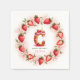 Adicione um toque doce e festivo à sua celebração com este guardanapo de aniversário com o tema dos morangos! Apresentando uma ilustração com uma aquarela esbranquiçada da letra "C" como um delicioso bolo de morango, este charmoso design é perfeito para aniversários infantis e festas de verão. O bolo é tocado com morangos frescos, glacé rosa e uma vela de aniversário brilhante. Ao redor do bolo, um elegante quadro circular de morangos pintados à mão e delicadas folhas verdes melhora a design. A frase "Parabéns" e um nome personalizável fazem dele um acessório único e pessoal do partido. Um complemento perfeito para uma comemoração de morango!
