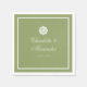 Moss green wedding napkin for a refined estate wedding, featuring elegant handwritten calligraphy and a soft monogram detail in a traditional formal and old money aesthetic. Designed for the romantic bride hosting a classic southern or country club wedding, with muted olive green tones and understated luxury. Style with linen textures or layered place settings for a timeless, graceful tablescape.