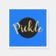 Este design de modelo divertido apresenta o texto "Pickle" do guião amarelo quente, festivo e centrado em frente a um círculo central preto e um fundo azul brilhante vibrante. O texto pode ser personalizado.
