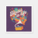 Design de retrorreflectores coloridos com o design de texto "Vida é música" com flores retrorreflectoras, círculos e decoração gramofônica