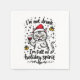 Uma design de Natal engraçada e alegre mostra um gato vestindo um chapéu de Papai Noel, segurando um copo de vinho tinto. A cena festiva é decorada com estrelas e sinos de Natal, acompanhados por texto manuscrito que diz, "Não sou bebado, sou cheio de espírito de feriado." Este design delicioso está disponível em uma variedade de produtos, fazer-o um presente perfeito para amantes de vinho.