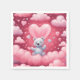Uma ilustração encantadora de um ursinho branco liso sentado em nuvens cor-de-rosa, segurando balões em forma de coração. O fundo balístico está cheio de nuvens rosadas e corações flutuantes, criando uma atmosfera sonhadora e romântica. Ideal para o Dia do Namorados, festa infantil, designs decorativos bonitos e guardanapos. Excelente para ideias de presentes