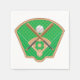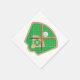 Este design é um campo de beisebol. A perspectiva é olhar para o campo. Você pode ver o diamante e depois o campo externo. Sobrepostos no topo estão dois morcegos de beisebol se cruzando e um beisebol. Este design de baseball parece excelente nestes guardanapos de papel. Perfeito para si mesmo ou como presente