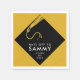 Classe de graduação de 25 guardanapos com design preto e linha de parabéns em um fundo dourado. Editar texto para adicionar o nome do formando e o ano.