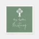 Guardanapos verdes-férn com uma cruz floral branca para batizar ou batismo. Personalize com o nome do seu bebê e mude batizando para batismo, se preferir. Parte da Coleção Floral Cross Christening.