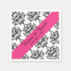 Os guardanapos de papel de casamento feitos em uma cor damasco preta e branca. Uma banda rosa-quente, corre diagonalmente pelo meio do guardanapo, com texto preto. Personalize o texto com os nomes da noiva e do noivo e a data do casamento.
