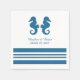 Livro Náutico Elegante e clássico de Casamentos de Cavalos-Marinhos Nápoles com um par de cavalos-marinhos simples e um conjunto de faixas em azul e branco marinho escuro. Esses guardanapos temáticos da praia náutica podem ser facilmente personalizados com seus detalhes de casamento. Para obter mais opções de personalização, clique no botão Personalizar Ti.