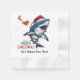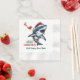 Um guardanapo de papel festivo com um tubarão alegre vestindo um chapéu de Papai Noel, rodeado por decorações com temas de Natal como flocos de neve e doces, perfeito para adicionar um toque lúdico à sua mesa de Natal.