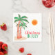 Vamos comemora o Natal em julho com um CHURRASCO ou festa! Convide familiares e amigos para comemoração temática do seu Natal e decore-a com estes guardanapos de papel estilo ilha, com palmeiras desenhadas à mão decoradas com luzes. Desenho original © Michele Davies.