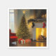 Estes guardanapos de papel apresentam uma árvore de Natal perto do fogo na manhã de Natal.