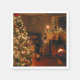 Uma linda árvore de férias com luzes brancas em uma casa decorada. Bela lareira