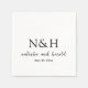 Os guardanapos de casamento modernos, com um design preto e branco simples e mínimo, com o seu monograma em letra de cor corajosa, juntamente com os seus nomes num guião elegante e com a sua data de casamento.