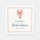 These chic coastal lobster bridal shower napkins feature a red hand drawn lobster and wavy scallop frame. On the back is a pattern of watercolor navy blue stripes. This nautical themed bridal shower invitation is perfect for the trending fisherman aesthetic.