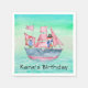 Navio pirata em azul para uma festa de aniversário de rapazes, cheio de piratas no navio com vendas cor-de-rosa. O céu e a água são verdes. As palavras sobre os guardanapos podem ser mudadas. Obrigados para Creative Fabrica e Hungryjpeg para alguns dos elementos do design.